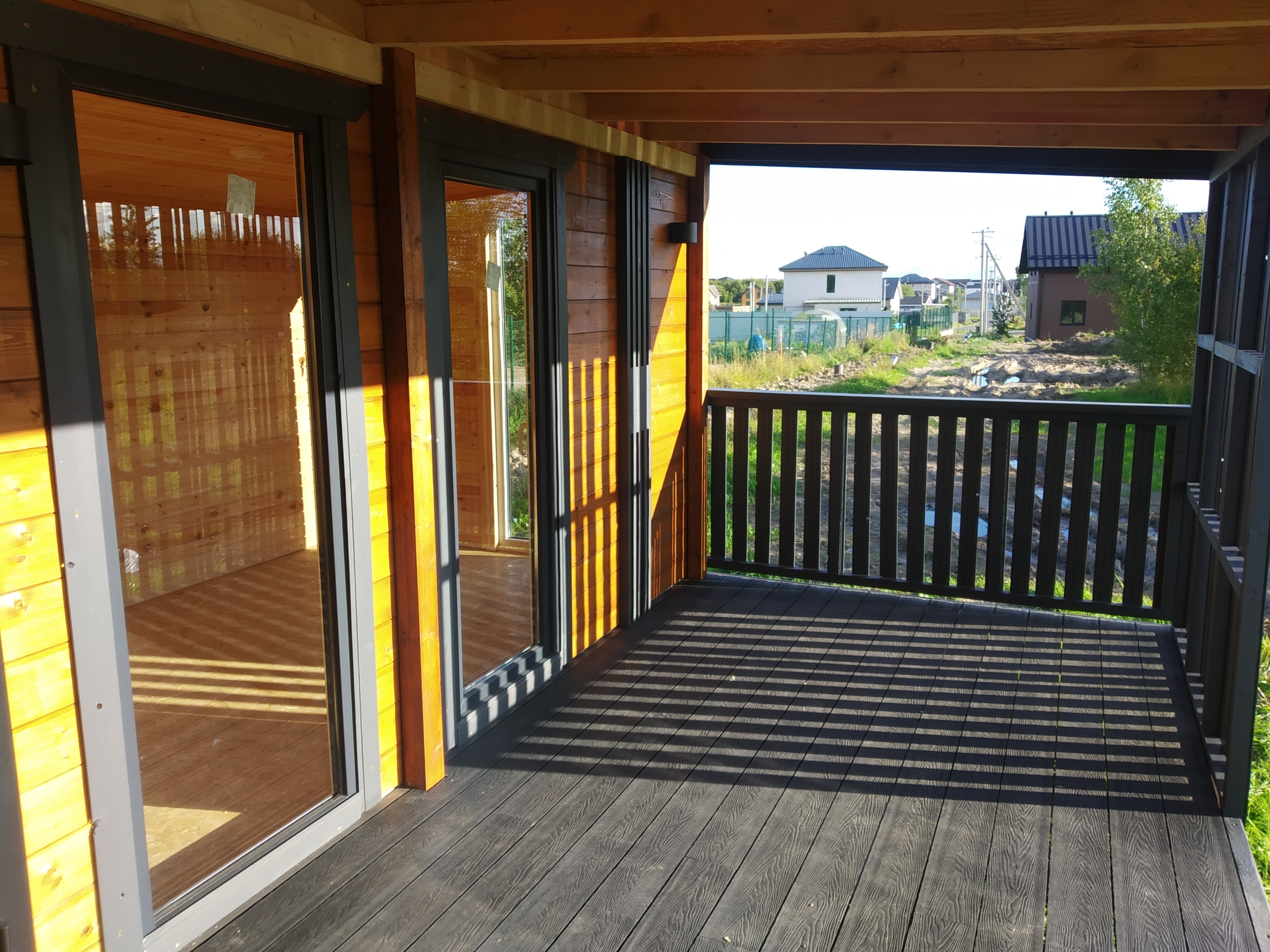 * полы: OSB 18 мм. и на террасе доска ДПК,